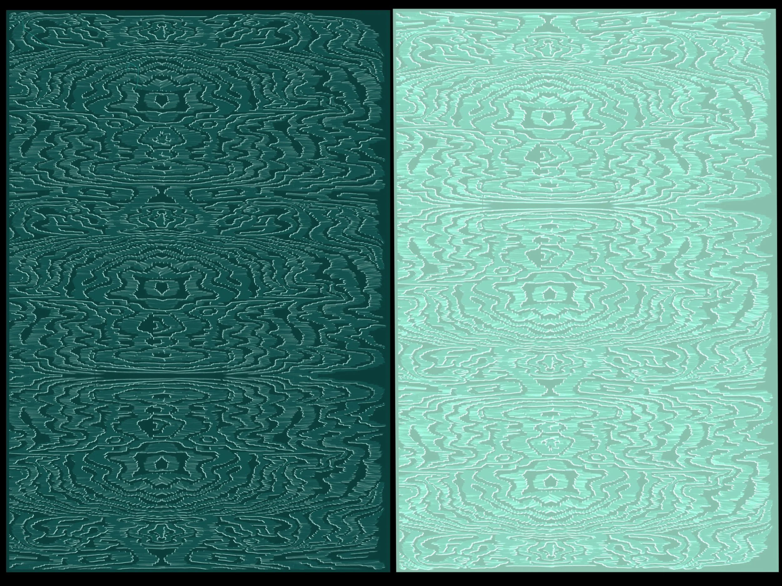 Bottom Image: Textile Patterns made by manipulating patterns of tree rings and abalone shell to connote wisdom and age. Its also meant to be reminiscent of moire silk